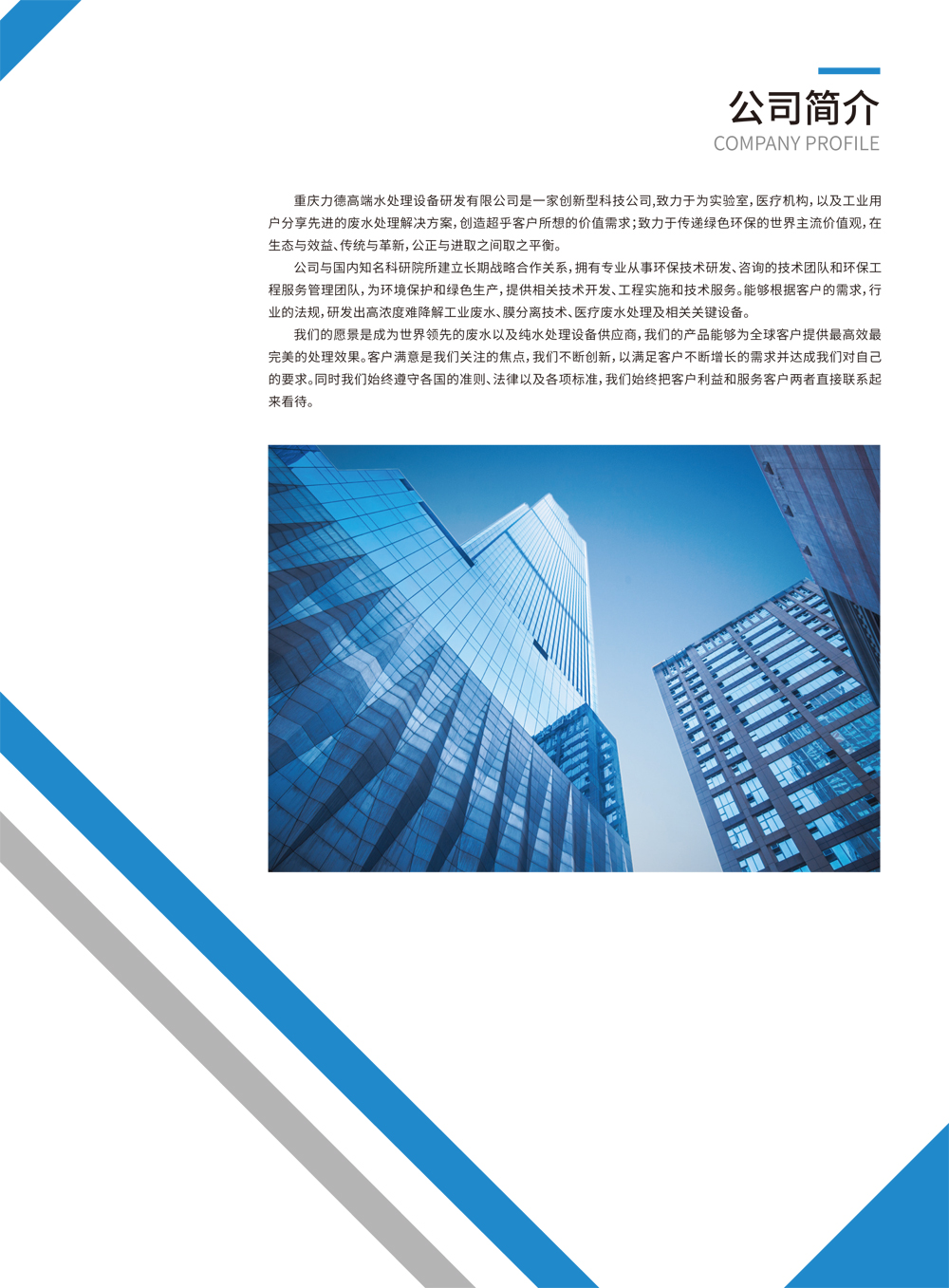【概要描述】重慶力德高端水處理設備研發有限公司位于重慶高新區西永微電園,是一家創新型科技企業。公司專注于純水超純水、高濃度難降解工業廢水、膜分離技術、分戶式生活污水凈化槽、高校水智慧實訓裝備及相關關鍵設備的研發及產業化。公司與國內知名科研院所建立有長期戰略合作關系,擁有專業從事環保技術研發、咨詢的技術團隊和環保工程服務管理團隊,公司強大的科研平臺和專業技術服務團隊,為環境保護和綠色生產,提供相關技術開發、工程